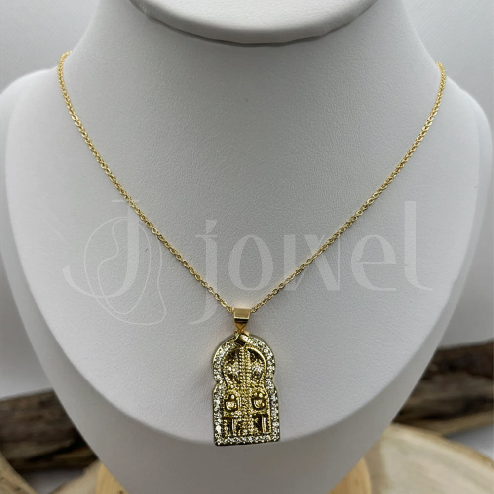 Collier Pendentif Porte Marocaine Dorée et Cristaux | Jowel.ma