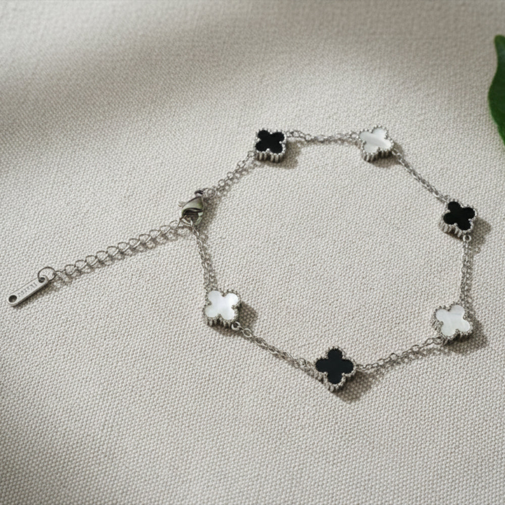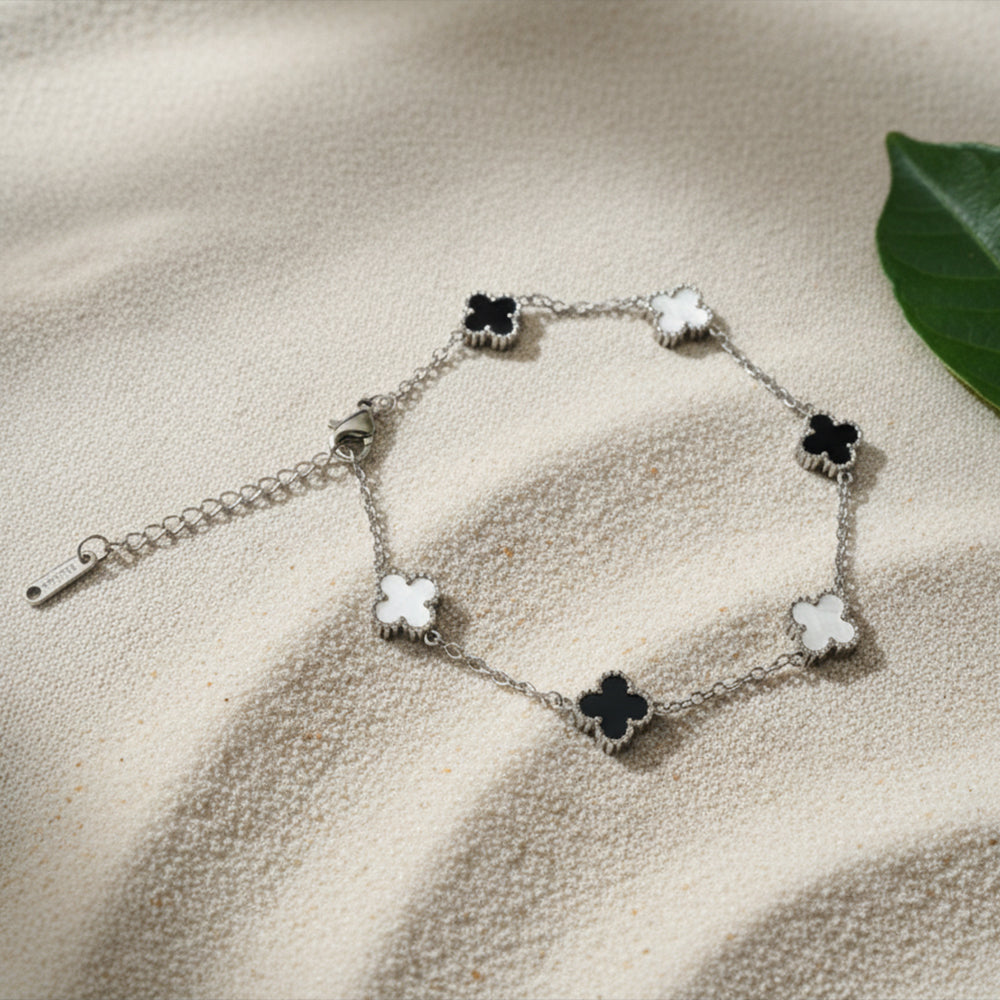 Bracelet Porte-Bonheur à Trèfles Noirs et Blancs | Jowel.ma