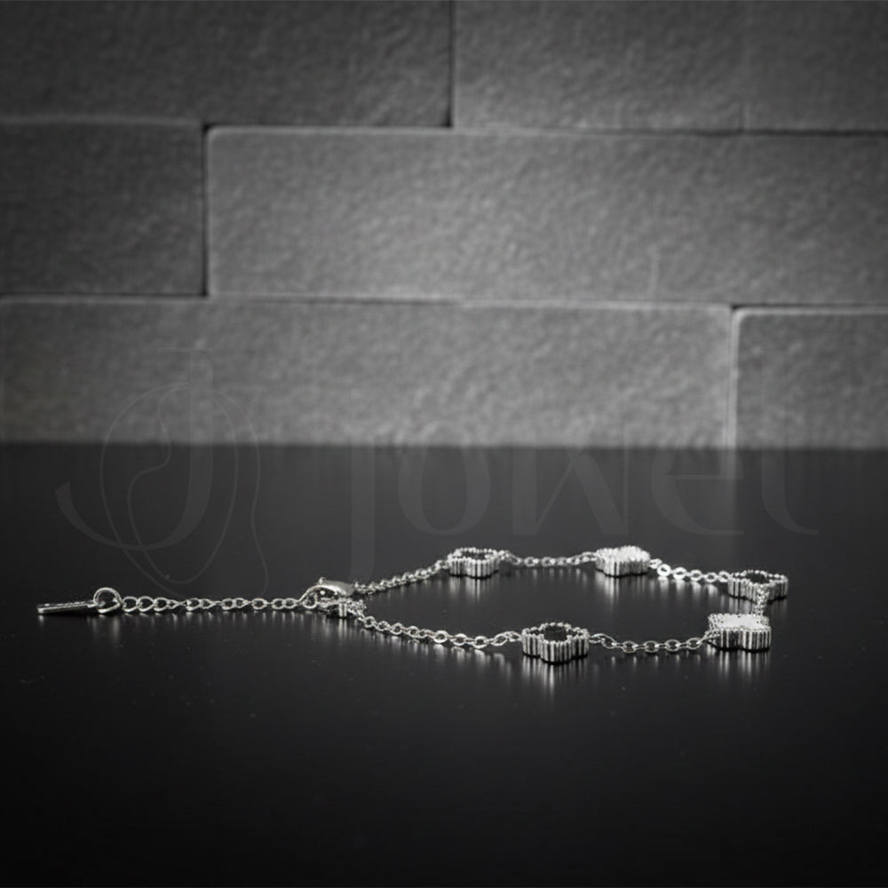 Bracelet Porte-Bonheur à Trèfles Noirs et Blancs | Jowel.ma Adoptez l'élégance intemporelle du noir et blanc avec notre bracelet à trèfles. Des motifs porte-bonheur, en nacre blanche et onyx noir, alternent sur une fine chaîne argentée. Chaque trèfle est délicatement...